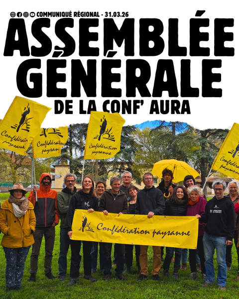 Faisant suite à celles de l’ensemble des Conf' départementales, la Confédération paysanne Auvergne-Rhône-Alpes a tenu son Assemblée générale annuelle à Chasse-sur-Rhône (38), le 31 mars. Une ...