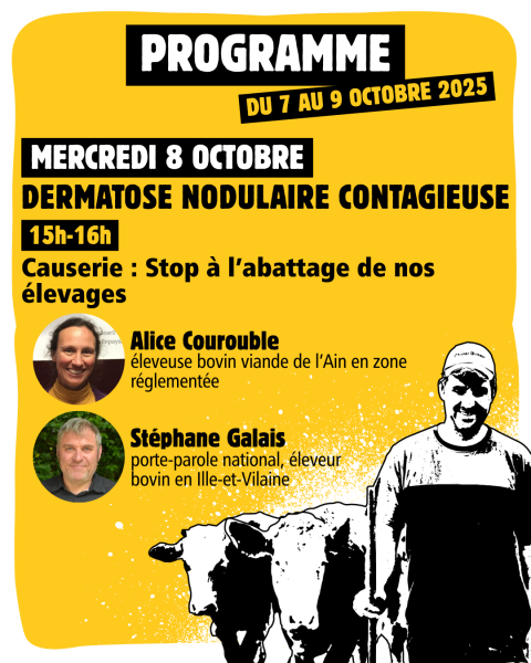 Cette année encore, la Confédération paysanne tiendra son stand au Sommet de l'élevage à Cournon d'Auvergne (63) du 7 au 10 octobre !